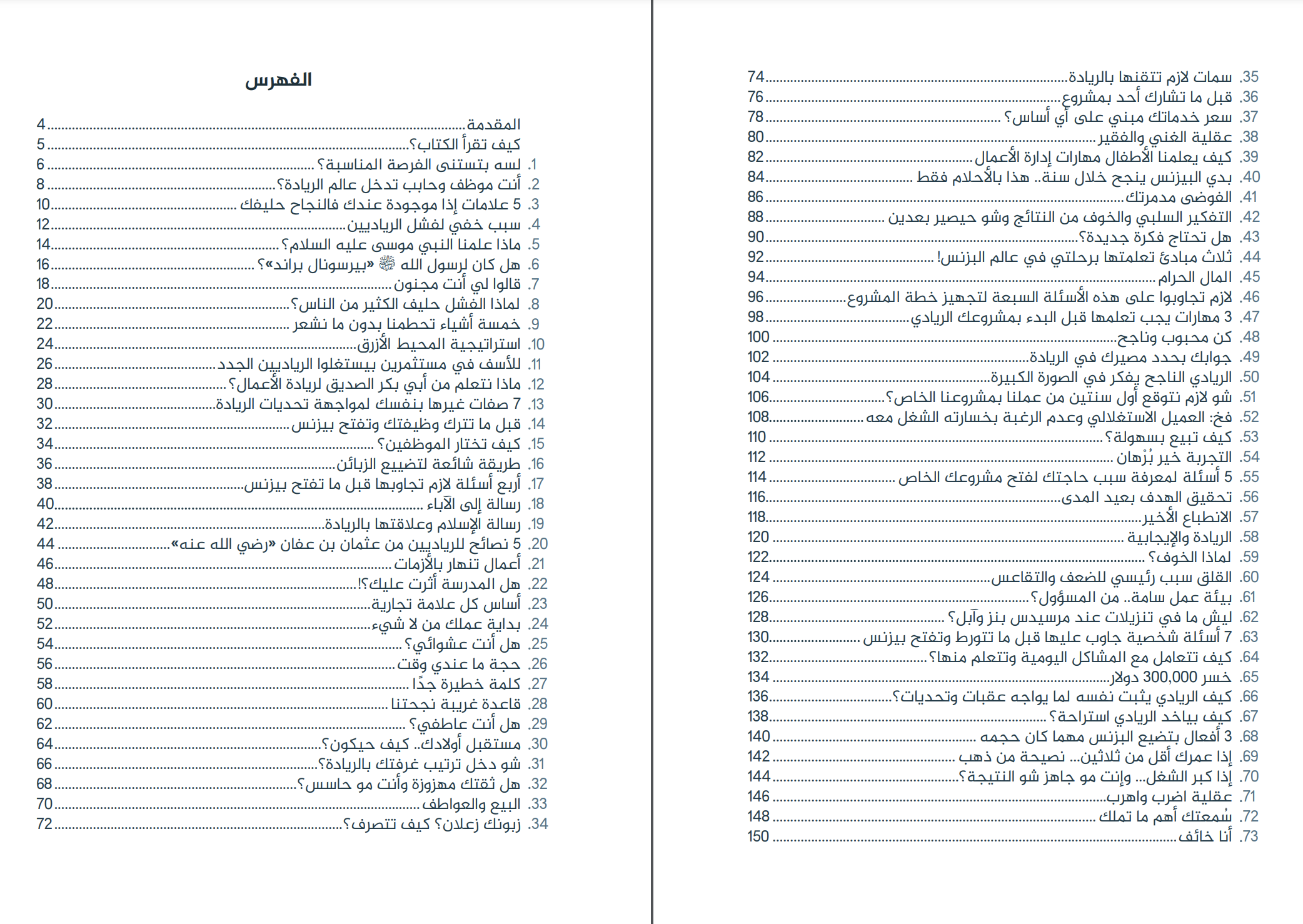 يستعرض الكتاب 100 من أهم المبادئ الريادية التي يحتاجها رائد الأعمال خلال رحلته، حيث تُسلِّط الضوء على 12 مهارة أساسية مهمة، يجب أن يتسم بها كل ريادي ناجح. وستجد مقابل كل مبدأ من هذه المبادئ اختبارات تشخيصية، وتمارين تدوين عملية لصقل هذه المهارات.